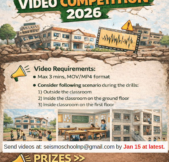On the occasion of the National Earthquake Safety Day on 16 January 2026, Seismology at School in Nepal is organizing the Earthquake Drill Video Competition 2026 to promote earthquake preparedness and safety awareness in school communities across Nepal. This initiative aims to encourage students and teachers to actively engage in[…]